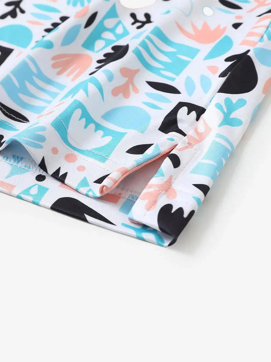 Get your little golfer ready for adventures with our 'Performance Print Boys Golf Polo.' Crafted from top-notch fabric that wicks moisture, stays light, and shields with UPF 30+. Let him swing freely with the split hem and stretchy fabric. Watch him rock the course in fun animal and plant prints that never fade, making him the cutest golfer around!