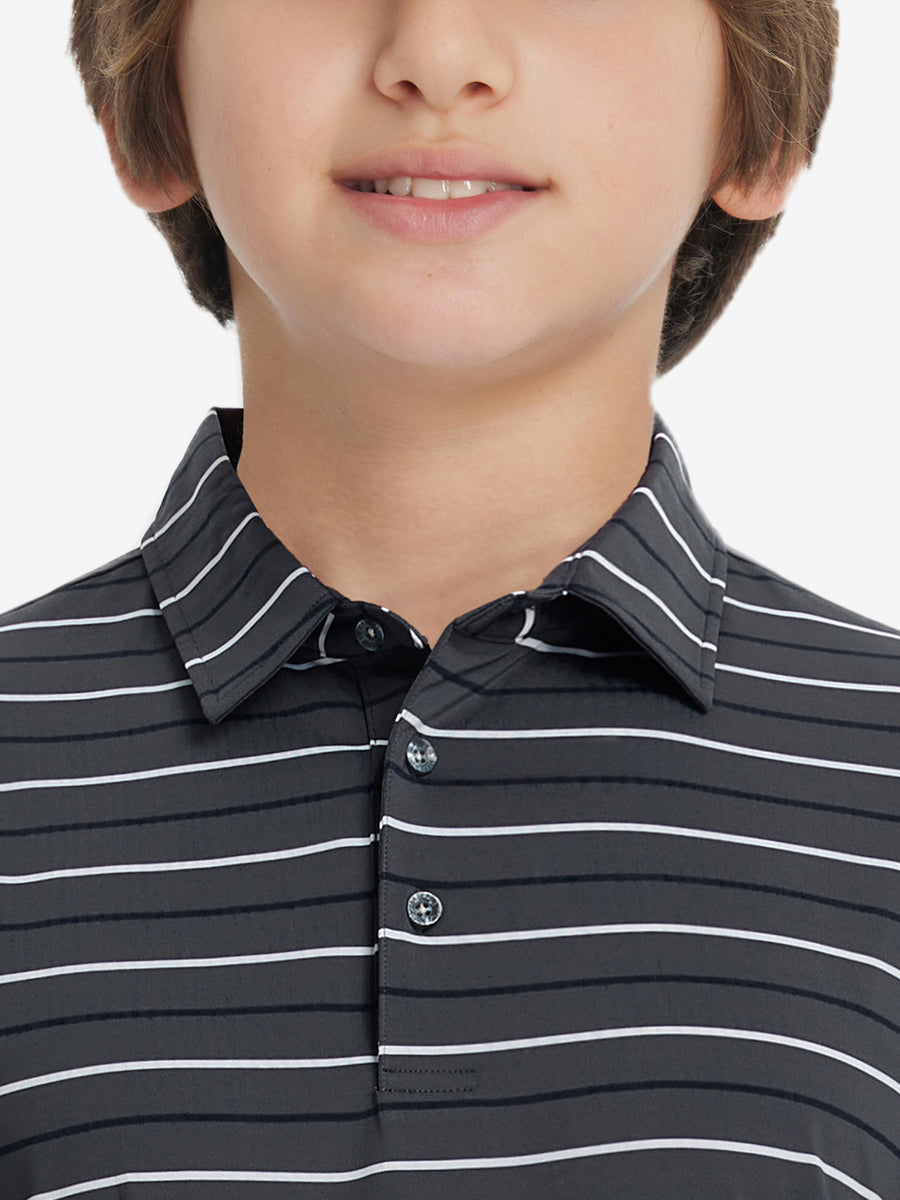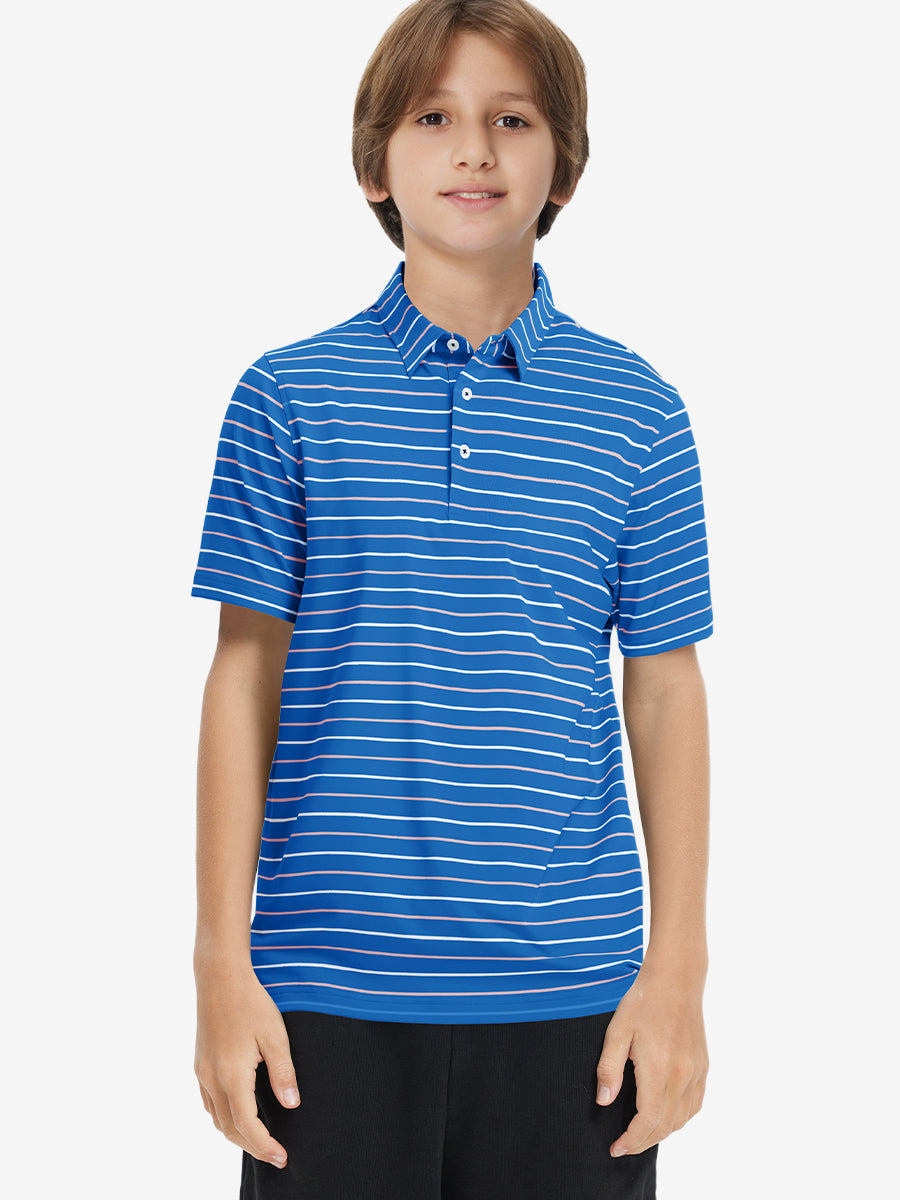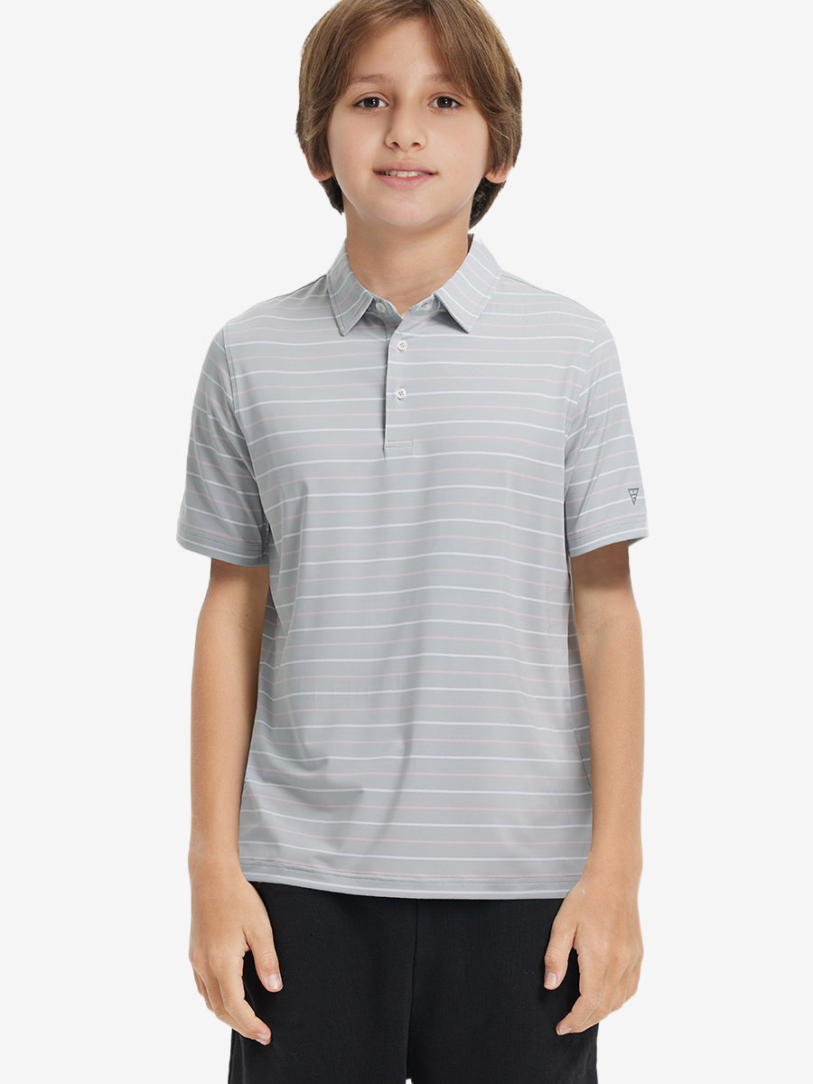 Introducing our Trendy Boys Stripe Polo Shirts! Made from high-end polyester spandex, these soft, skin-friendly, and lightweight shirts keep your little ones cool and dry in hot weather. With 4-way stretch fabric and premium dyeing, this vibrant youth golf shirt remains durable wash after wash, perfect for active kids who love to play.