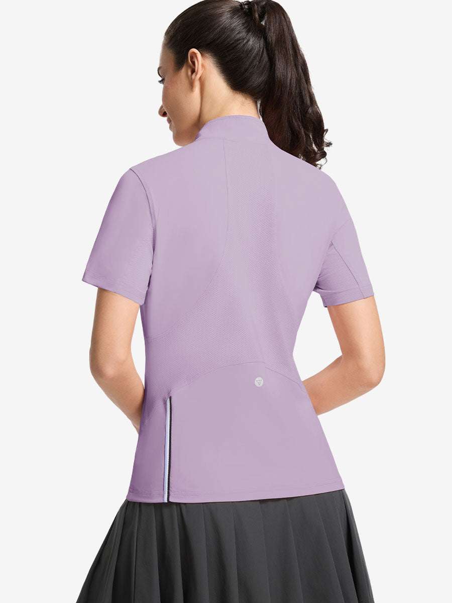 Stay cool and stylish in our Women's Breathable 1/4 Zip Pullover Golf Shirts. Designed with targeted breathable, moisture-wicking fabric at the back and underarms for all-day comfort. The ¼-zip front offers easy wear and a clean mock neck for a polished look, while the versatile design transitions seamlessly from golf and yoga to office or errands. Lightweight, functional, and effortlessly chic!