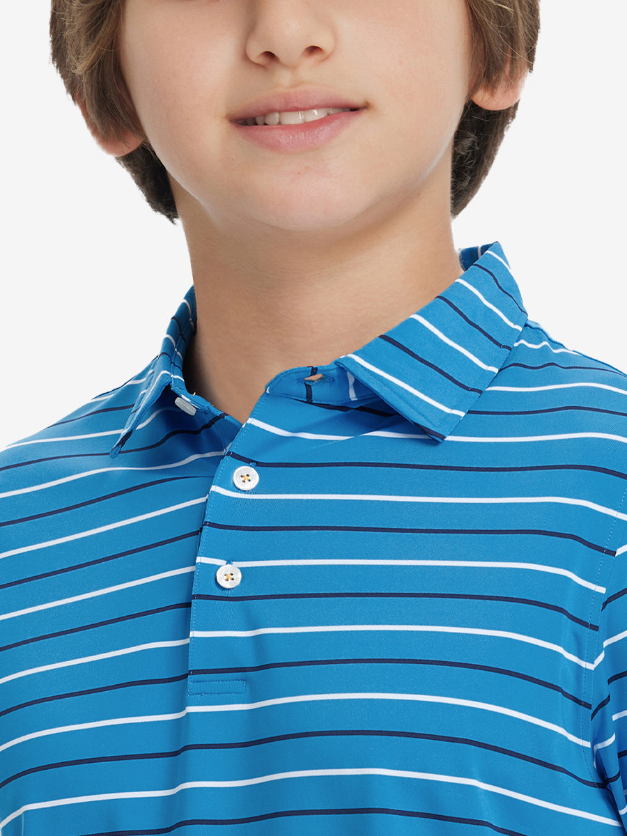 Introducing our Kids Stylish Stripe Polo Shirts! Made from high-end polyester spandex, these soft, skin-friendly, and lightweight shirts keep your little ones cool and dry in hot weather. With 4-way stretch fabric and premium dyeing, this vibrant youth golf shirt remains durable wash after wash, perfect for active kids who love to play.