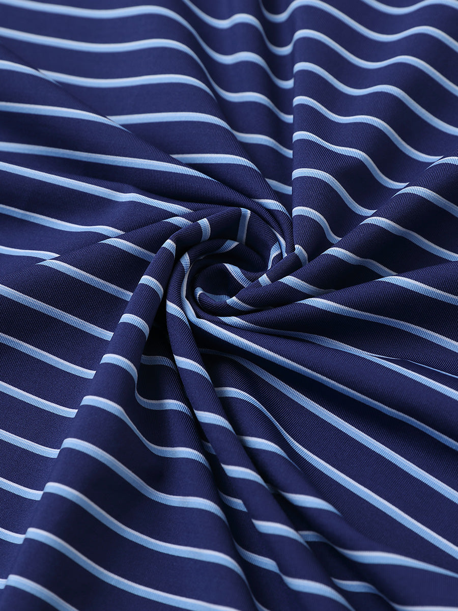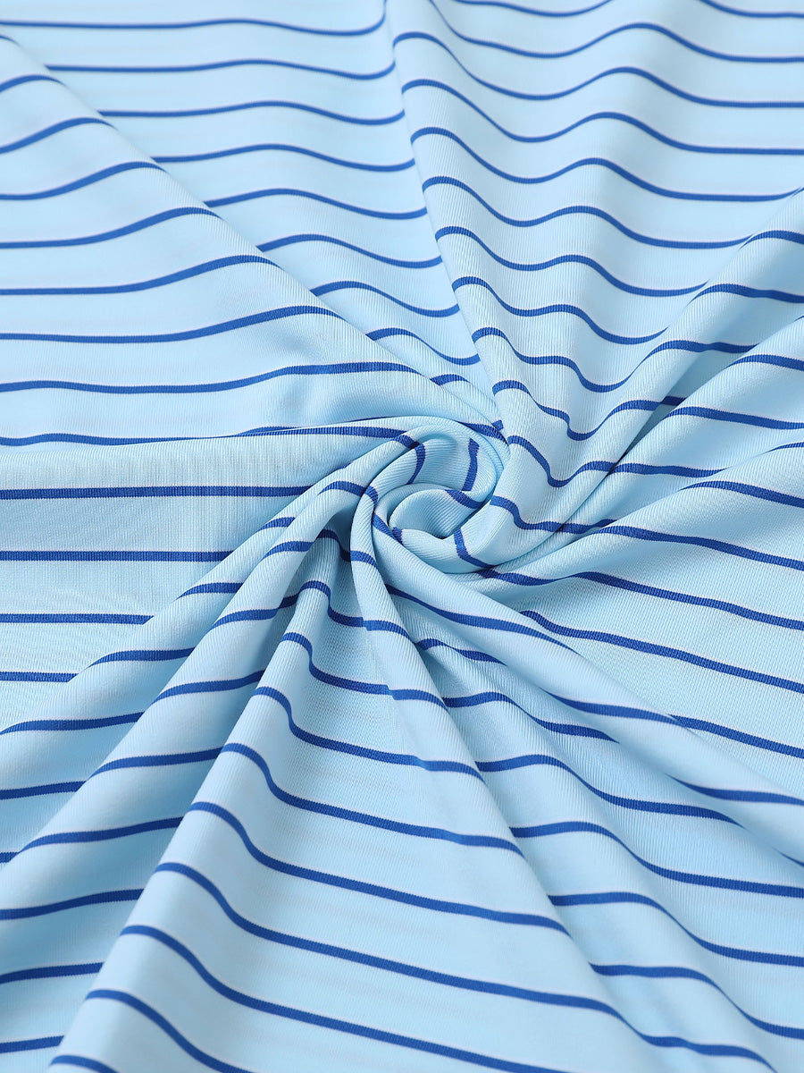 Experimenta una comodidad ligera con propiedades de absorción de humedad, secado rápido y elasticidad en cuatro direcciones para mejorar el movimiento. Nuestra camiseta de golf para hombre presenta rayas horizontales en punto de dos tonos, acentuadas por un llamativo diseño de contraste en el cuello y las aberturas, logrando una apariencia elegante, única y sofisticada.