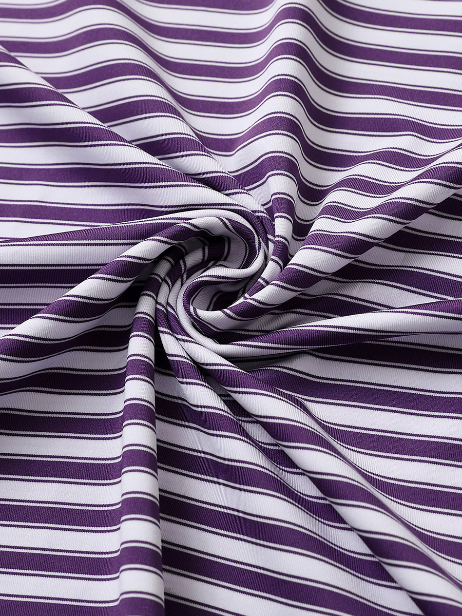 Introducing the "Yarn Dyed Stripe Polo" for men. Experience a soft hand-feel, lightweight design, and UPF 50+ protection for ultimate comfort in hot weather. These casual polo shirts offer breathability, quick-dry properties, and four-way stretch functionality for coolness, dryness, and unrestricted movement on and off the golf course.