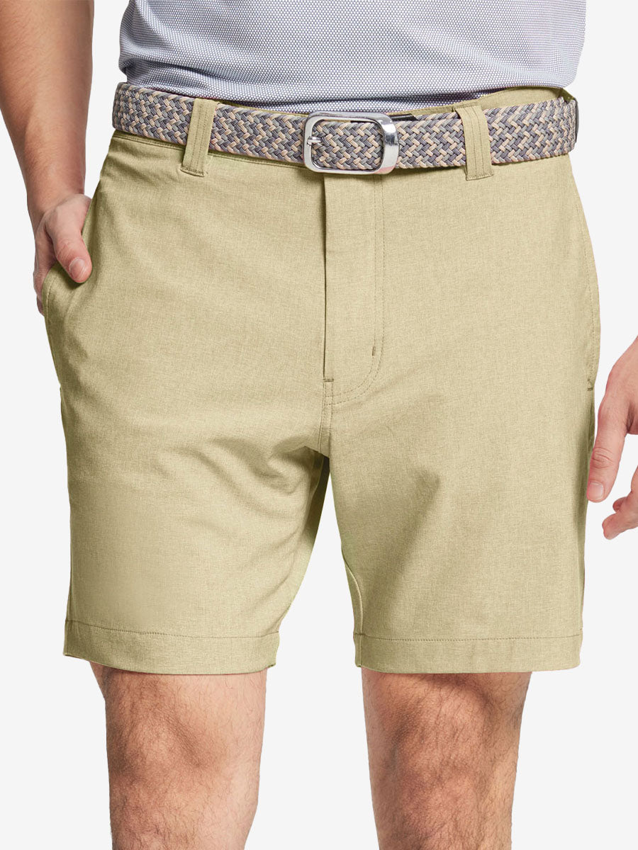 Introducing our Heather Performance Golf Shorts, designed for comfort and flexibility with skin-friendly materials and excellent stretch. These men's shorts feature moisture-wicking, quick-dry, and UPF 50+ properties for breathability and coolness. Enhanced with stylish heathered details, they are perfect for the golf course or casual wear, blending fashion with function effortlessly.
