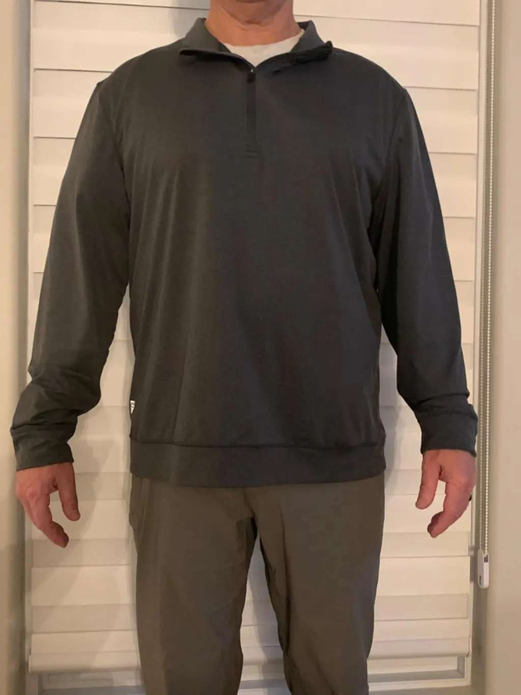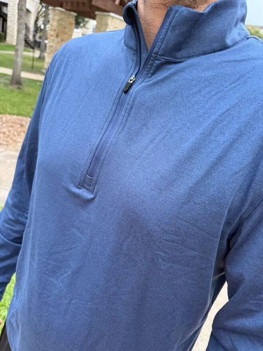 Meet our Quarter Zip Melange Pullover, the ultimate choice for golf aficionados. This men's sweatshirt is all about style and performance, featuring a sleek quarter zip placket with a windproof flap for that modern touch and easy temperature control. Crafted from a high-performance 4-way stretch brushed knit of polyester and spandex, it offers moisture-wicking, lightweight, and breathable comfort, ensuring you move with ease and style on the golf course. Elevate your game with comfort and sophistication!