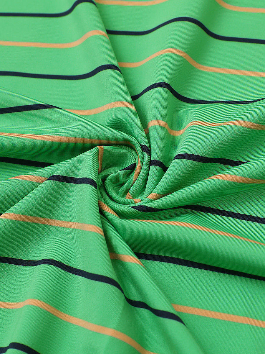 Our men's golf shirt features yarn-dyed stripes and is made from high-end polyester-spandex material, providing softness and breathability. It effectively wicks moisture to keep you cool and dry. With 4-way stretch fabric, this polo ensures full range of motion for any golfer. Ideal for the course or casual wear.