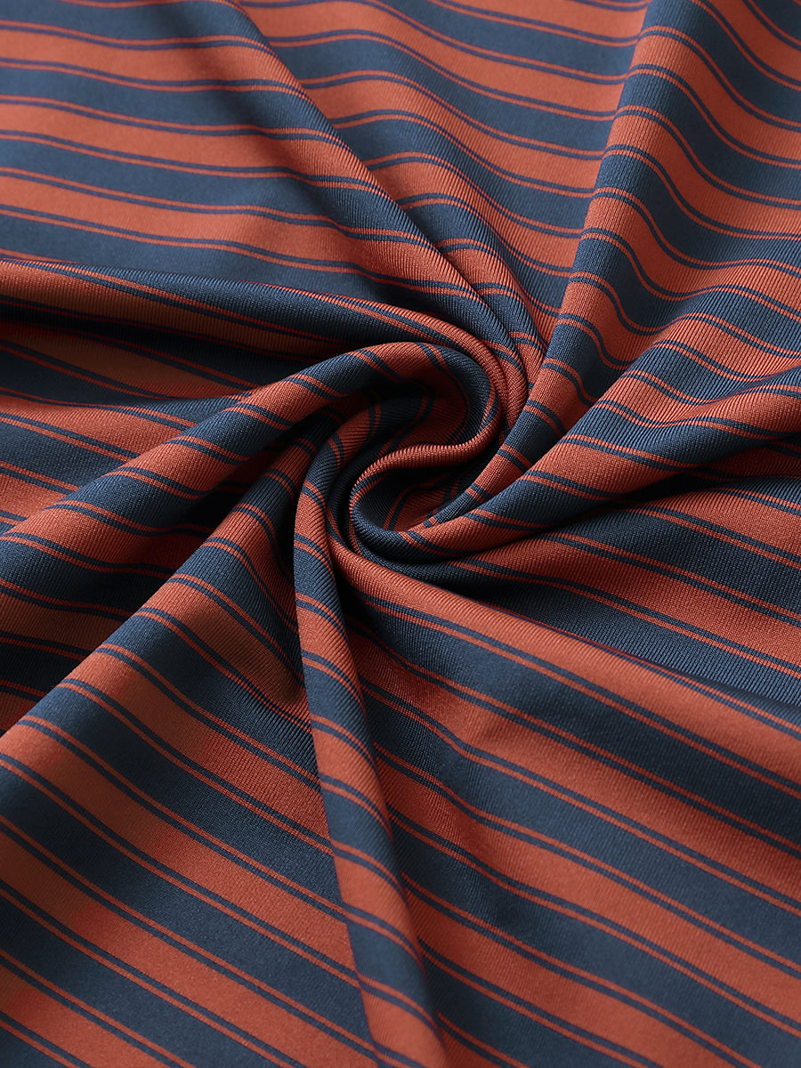 Introducing the "Yarn Dyed Stripe Polo" for men. Experience a soft hand-feel, lightweight design, and UPF 30+ protection for ultimate comfort in hot weather. These casual polo shirts offer breathability, quick-dry properties, and four-way stretch functionality for coolness, dryness, and unrestricted movement on and off the golf course.